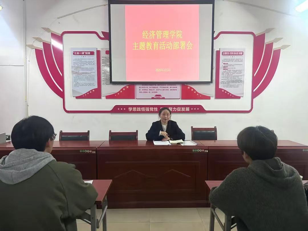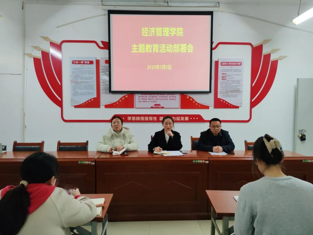 为深入学习贯彻习近平新时代中国特色社会主义思想、党的二十大和二十届三中全会精神,落实立德树人根本任务,进一步加强和改进大学生思想政治教育,激发青年大学生的奋斗热情,推进“大学生主题教育活动”。3月3日,经济管理学院在A栋教学楼401会议室分两场召开主题教育活动部署会议。