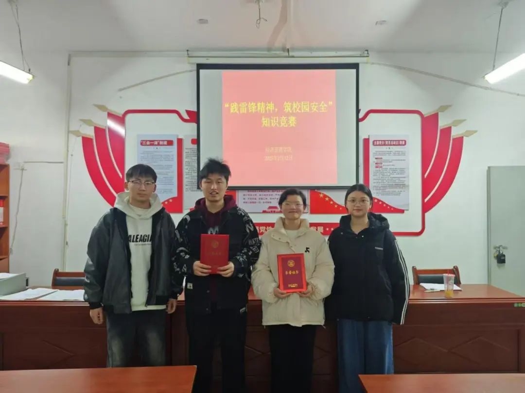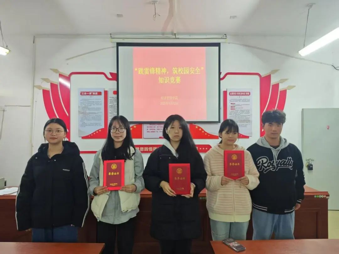 活动结束后,活动负责人为获奖选手颁发荣誉证书和奖品。此次活动将雷锋精神与校园安全知识普及有机结合,不仅是一次知识竞赛,更是一次生动的思政教育和安全教育实践。今后,经济管理学院将继续举办形式多样的活动,推动学生全面发展,为构建和谐、安全校园贡献力量。