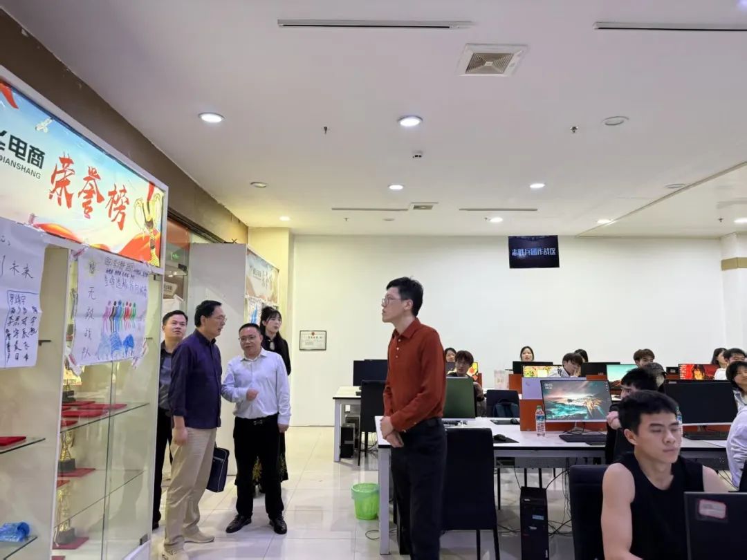 专家组还现场察看学生认知实习上课情况。学生们认真听讲,积极与企业授课教师互动,展现出良好的学习状态。随后,专家组在企业人员陪同下参观公司,深入了解企业的业务范围、工作流程、工作环境等情况,企业成套的工作培训模式与浓厚的创新氛围给专家组留下深刻印象。此次检查评估,专家组对江西腾飞网络技术有限公司作为校外实践基地的建设与运行给予高度评价,期待双方未来在人才培养与产学研合作上取得更多成果。
