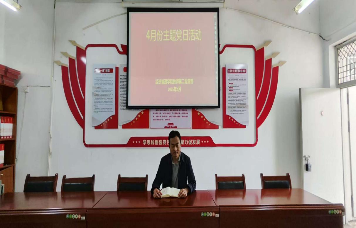 为深入学习贯彻习近平新时代中国特色社会主义思想和党的二十大精神,全面提升政治素养。2025年4月13日下午,经济管理学院教师第二党支部召开四月份主题党日活动。此次党日活动由经济管理学院教师第二党支部书记郭伟光主持,教师第二党支部全体党员教师参加。