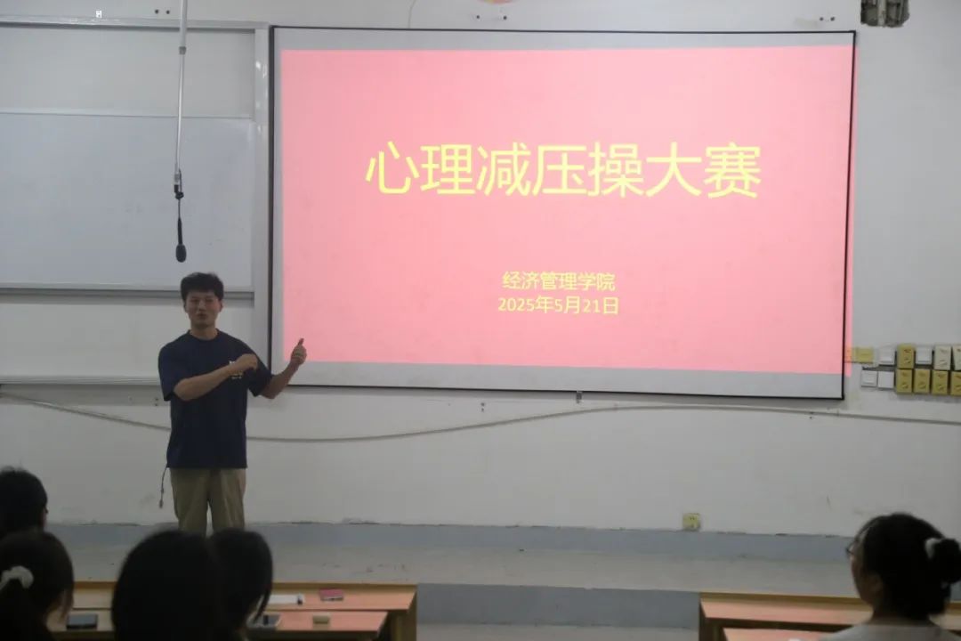 为帮助同学们释放压力,以更积极健康的心态面对学习与生活。2025521日晚上7点,经济管理学院在B106成功举办了一场以 “律动身心,逐梦前行”为主题的心理减压操院赛,本次比赛由艾陈玮主持,各班级积极参与。