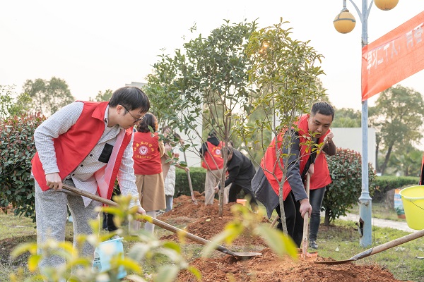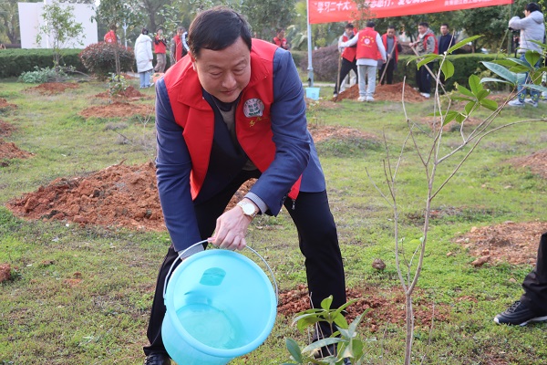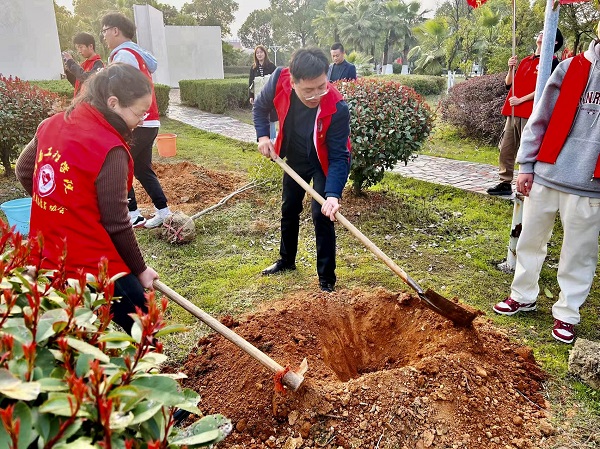 “植一株绿色,溢一片春光”。为营造良好的校园环境,启动仪式结束后,在学校领导的带领下,青年志愿者队伍们穿上红马甲、带着水桶、拿起铲子,奔赴绿植区域开展义务植树活动,一颗颗小树苗,挺直的站立起来,每一铲下去是为其打好基础,每浇下的一滴水,是为更好茁壮成长埋下伏笔,每流下的一滴汗水,那更是青年们希望的汗水。