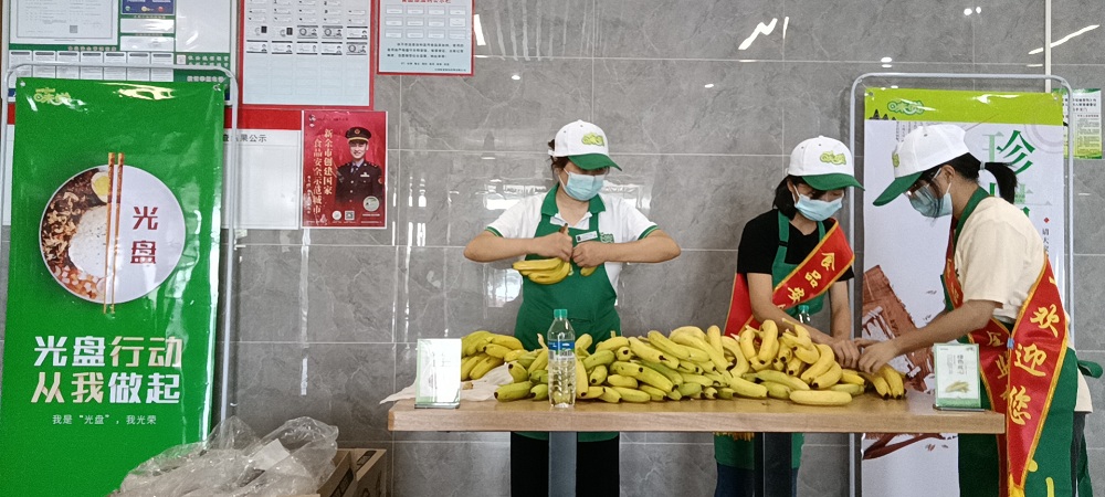中心食堂一楼光盘行动免费吃香蕉