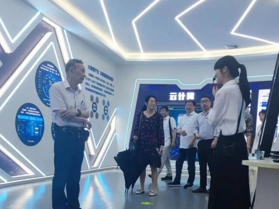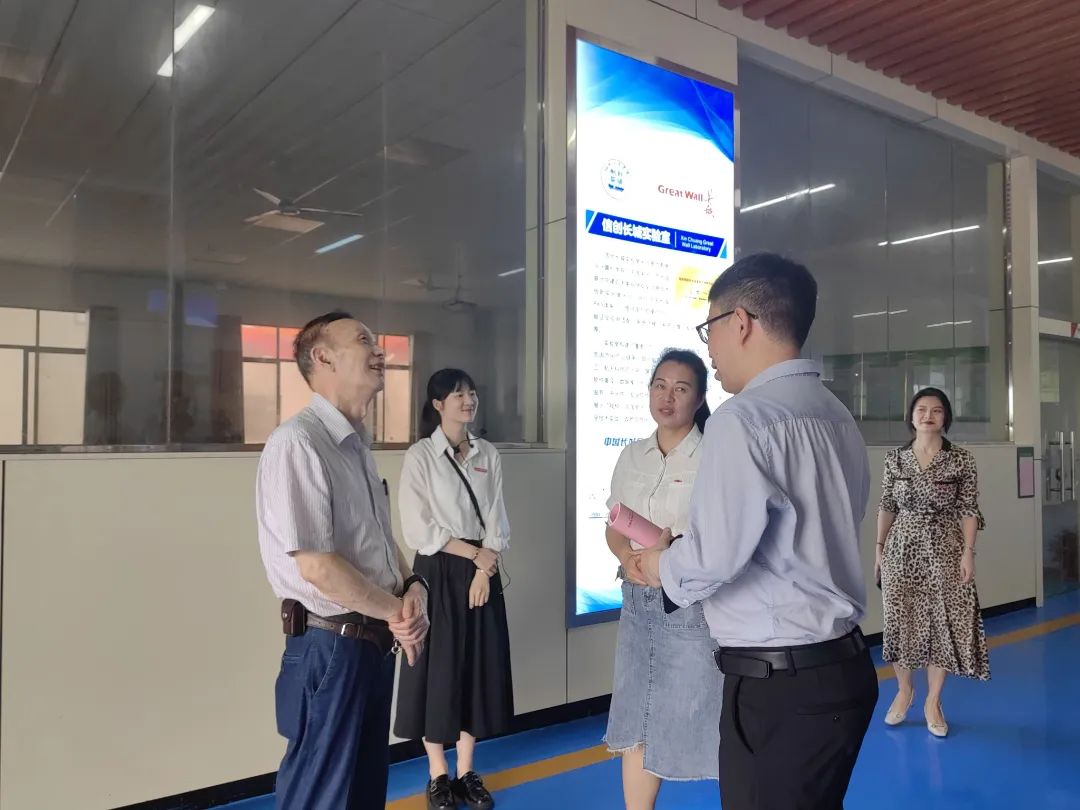 巢喜剑带领南昌师范学院一行来到了我院华为ICT实验室进行参观,讲解员彭凤老师为他们介绍了我院诸多实验室,如智能农业实验室,信创长城实验室等等。