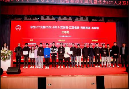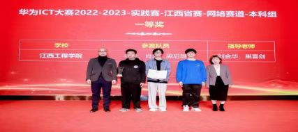 2023年3月18日,华为ICT大赛2022-2023江西省赛区颁奖典礼在国家职业教育虚拟仿真示范基地(南昌)举行,本次大赛共35所高校2146名学生中脱颖而出的25所高校300名学生参与到决赛中来,其中我院学生经过激烈的初赛、决赛比拼,在本科网络赛道组荣获一等奖1个、三等奖2个;网络赛道三等奖1个;本科云赛道三等奖1个。