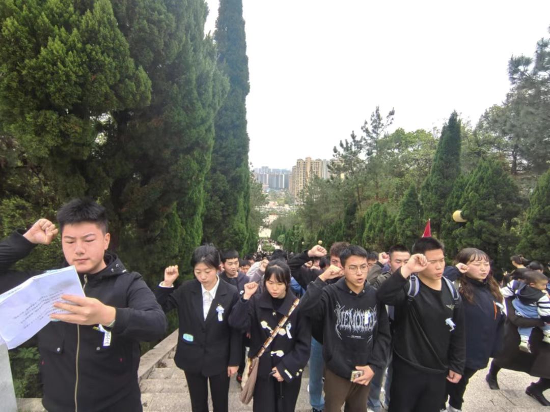 由林稳在烈士纪念碑前致辞,缅怀所有为解放事业、建设新中国、保卫人民而献出生命的烈士们,希望同学们将对革命先烈的缅怀之情转化为个人奋进的精神动力,立志发挥新时代青年先锋模范作用,自觉肩负起时代赋予的光荣使命。