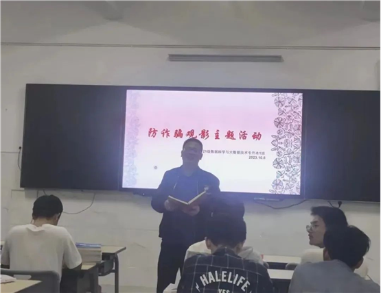 近年来,随着互联网技术的飞速发展,诈骗手段日益翻新,网络诈骗现象屡见不鲜。大学生成为诈骗犯罪的高危人群。为了提高大学生的反诈防骗意识,增强反诈防骗能力,普及反诈防骗知识。大数据与计算机学院于2023年10月8日晚自习在各班教室展开了以防诈骗为主题的线下观影活动。