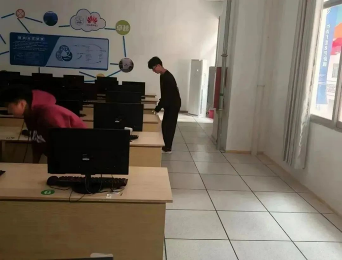 活动开始之前,各班生活委员通知各班值日生按要求整顿好班级、实验室及寝室的卫生。要求地面洁净、无灰尘污迹,门窗、灯、电扇、讲台等要明亮、干净、无灰尘;并且门窗无乱张贴,窗台内外无杂物;窗帘干净整洁、按学校要求统一挂放;墙壁无灰尘,无乱贴现象,学校发放的各种制度、要求、班规应按照要求统一张贴,合理布置。学生课桌面必须干净整齐,无乱放书籍、纸张等杂物。实验室卫生保洁工具要摆放整齐,不得放在楼梯或走廊,卫生桶要及时倾倒并清洗。面对严格要求,各班的值日生们认真对待,悉心打扫室内卫生。此外,大数据与计算机学院的学生主动、积极要求打扫宿舍卫生,符合当代学生宿室文化建设要求。