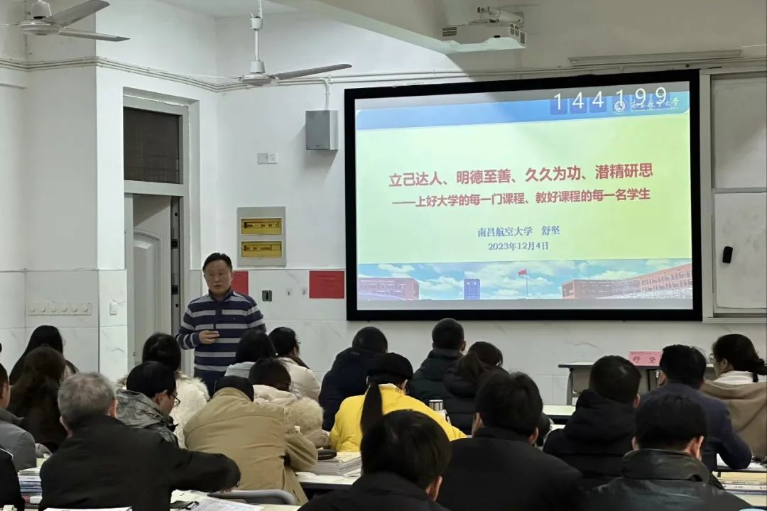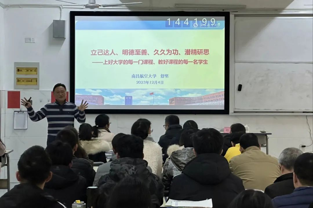 随后,舒坚教授开始讲座。第一、立己达人的初心——高等教育的使命与召唤。作为老师我们要上好大学的每一门课程、教好课程的每一名学生。课程是最微观的问题,但解决的是教育的根本问题。我们要体现出课程是“以学生发展为中心”理念的“最后一公里”,落实“立德树人成效”根本标准的具体化、操作化和目标化。
