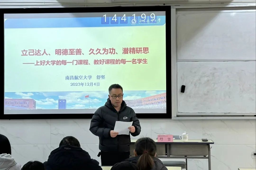 首先,巢喜剑向在座教师介绍舒坚。舒坚教授是南昌航空大学软件学院院长,硕士生导师,他先后讲授“软件工程”、“计算机网络”、“无线传感网络”等课程,是全国“三育人”先进个人。