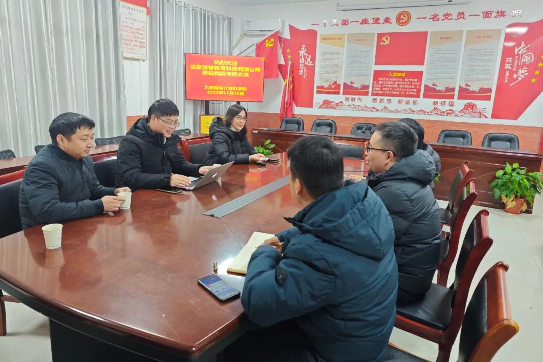 12月18日北京龙誉教育科技有限公司江西分公司负责人一行莅临大数据与计算机学院考察交流。我院院长巢喜剑、党总支书记王娟等学院领导热情接待并全程陪同。