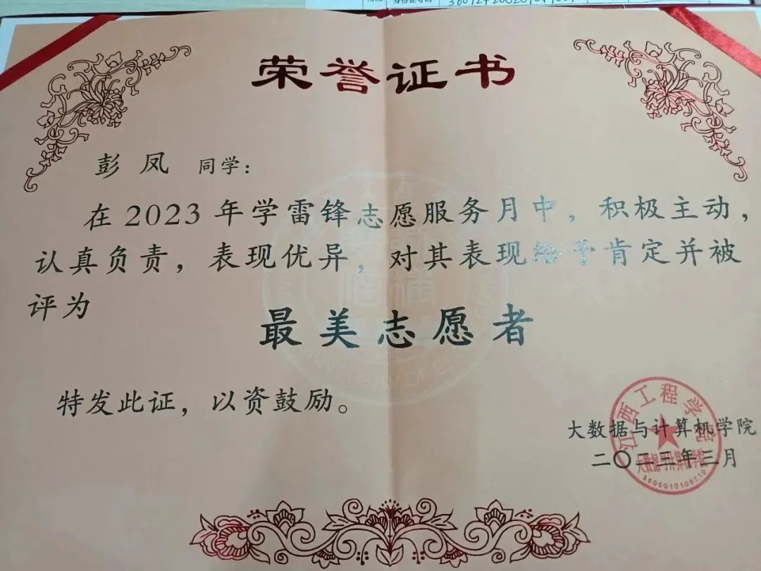 展青春风采,树榜样力量——大数据与计算机学院国家励志奖学金获得者彭凤②