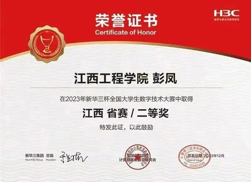 2023年12月:在2023年新华三杯全国大学生数字技术大赛中取得江西省赛二等奖