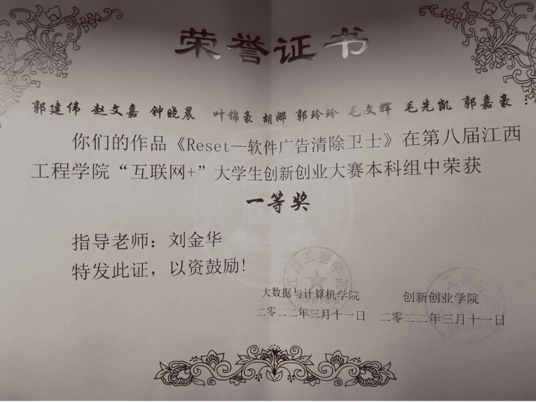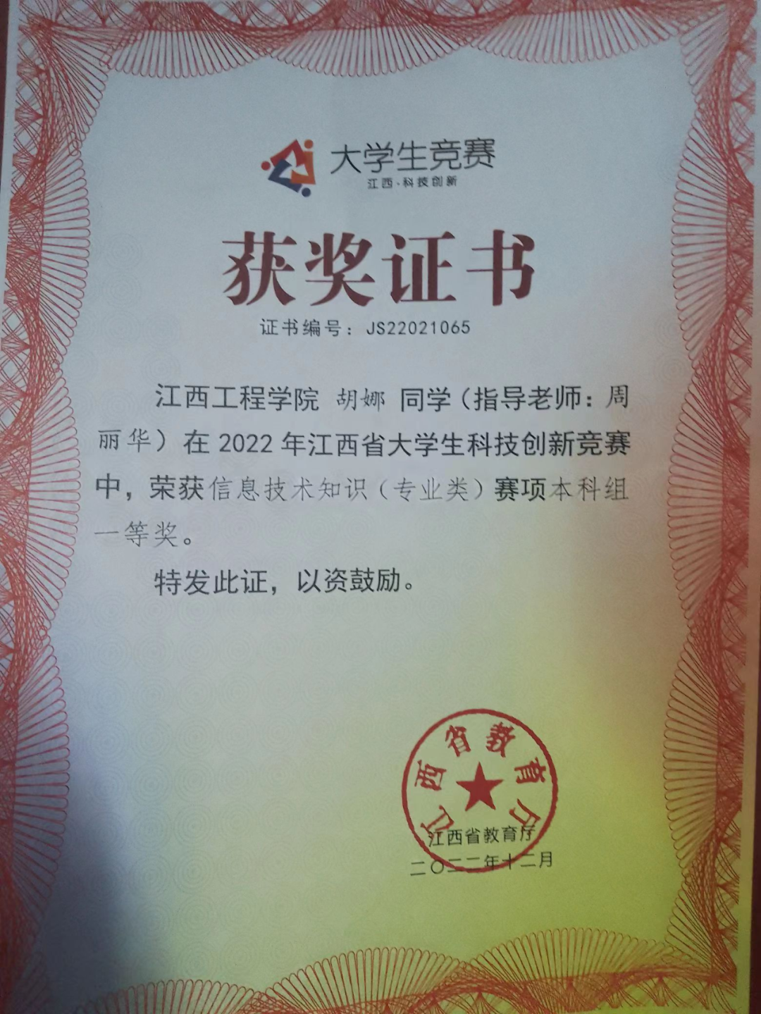 2022年12月:获得江西省“信息技术大赛一等奖”