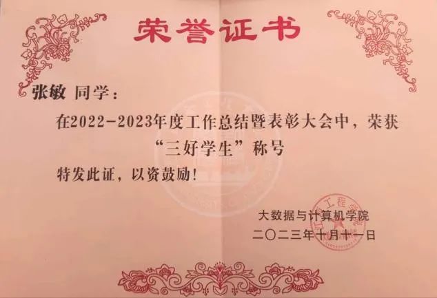 展青春风采,树榜样力量——大数据与计算机学院国家励志奖学金获得者张敏⑥