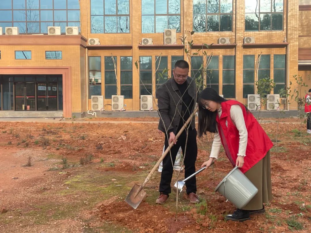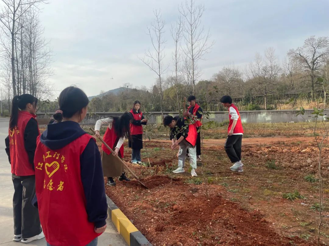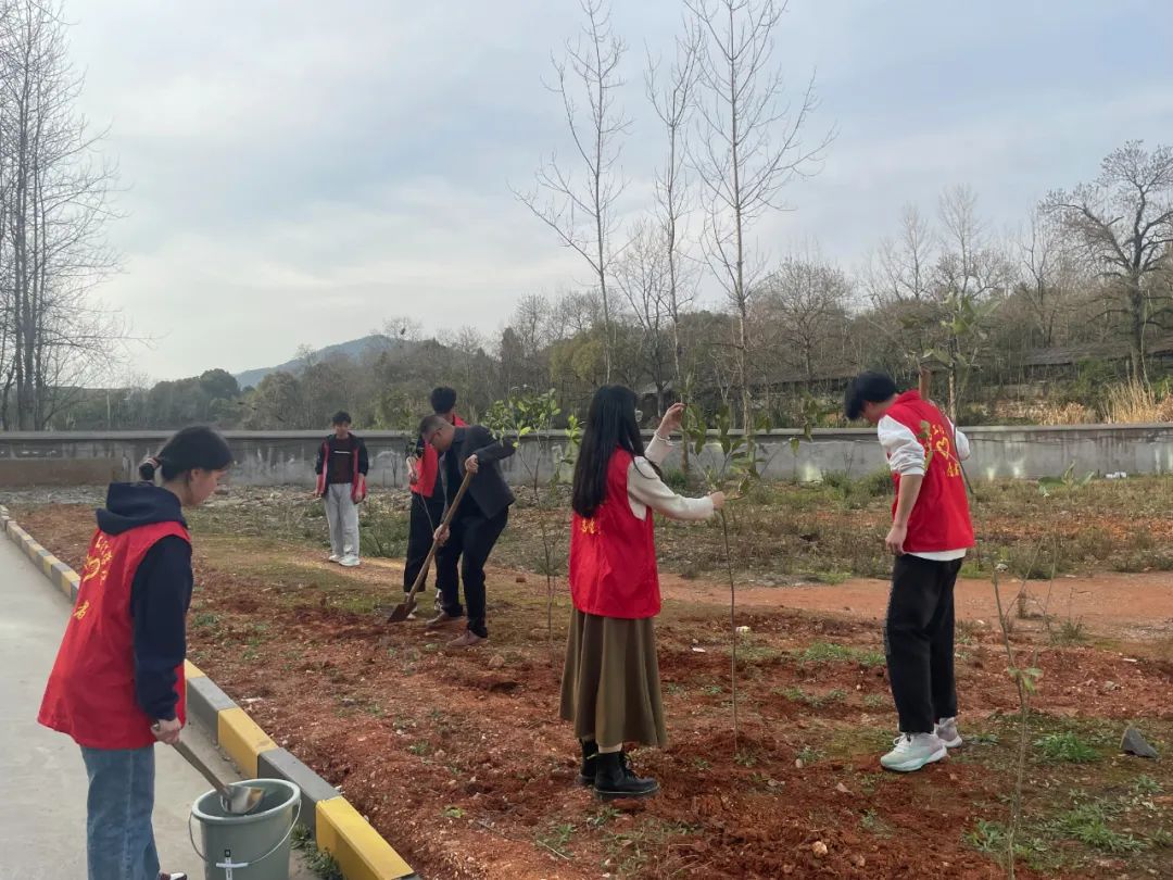 春回大地万物苏,植树添绿正当时。为深入贯彻落实习近平总书记“绿水青山就是金山银山”的绿色发展理念,切实加强生态环境保护建设。2024年3月12日,在我国第46个植树节来临之际,大数据与计算机学院团总支书记林稳及志愿者在学校新食堂旁开展了志愿植树节活动,用实际行动为建设文明美丽和谐校园尽一份力。