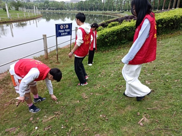 活动中,志愿者们身穿红马甲,带着清洁工具来到校园湖畔,扫垃圾,除杂物杂草,整治乱堆乱放,细致清理灌木花坛等卫生死角。大家热情高涨、干劲十足,充分发挥不怕脏、不怕累的精神,不落下任何一个角落,不放过任何一片污渍。一件件志愿马甲仿佛一簇火苗,聚在一起,一幅热火朝天的景象。通过大家的辛勤劳动,湖畔变得更加整洁。