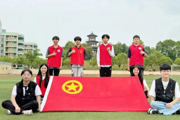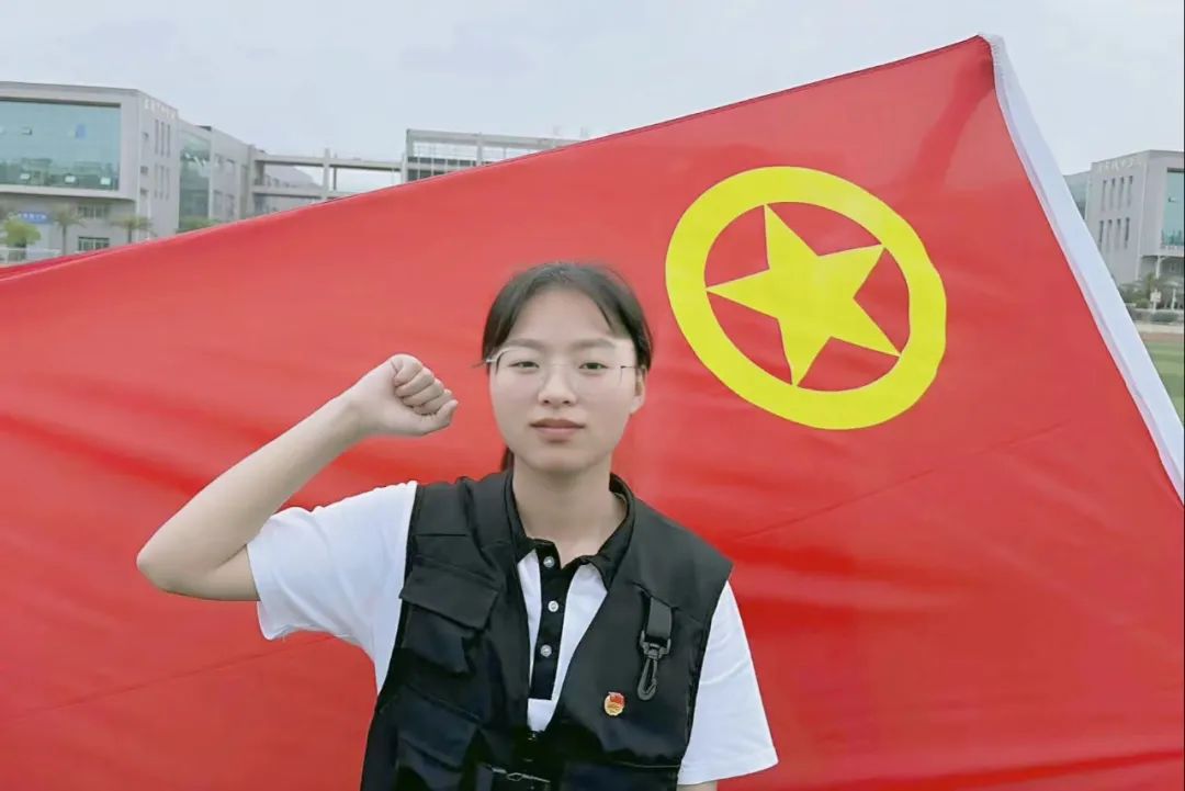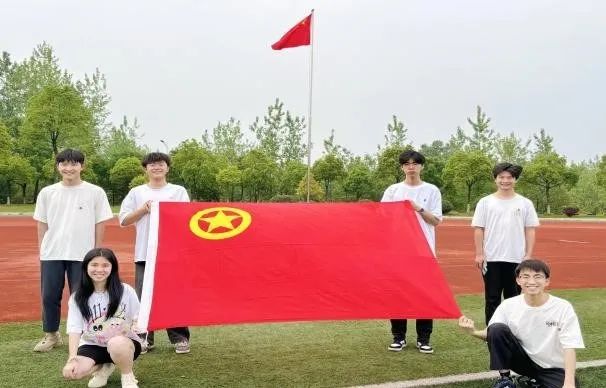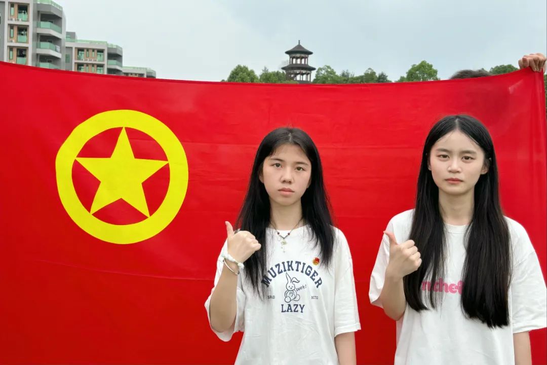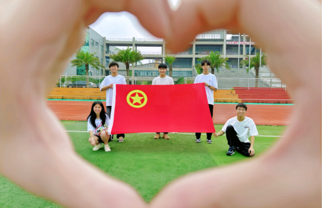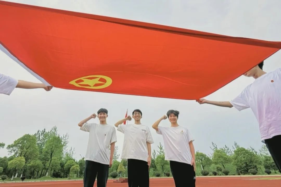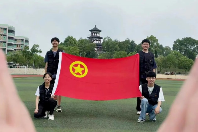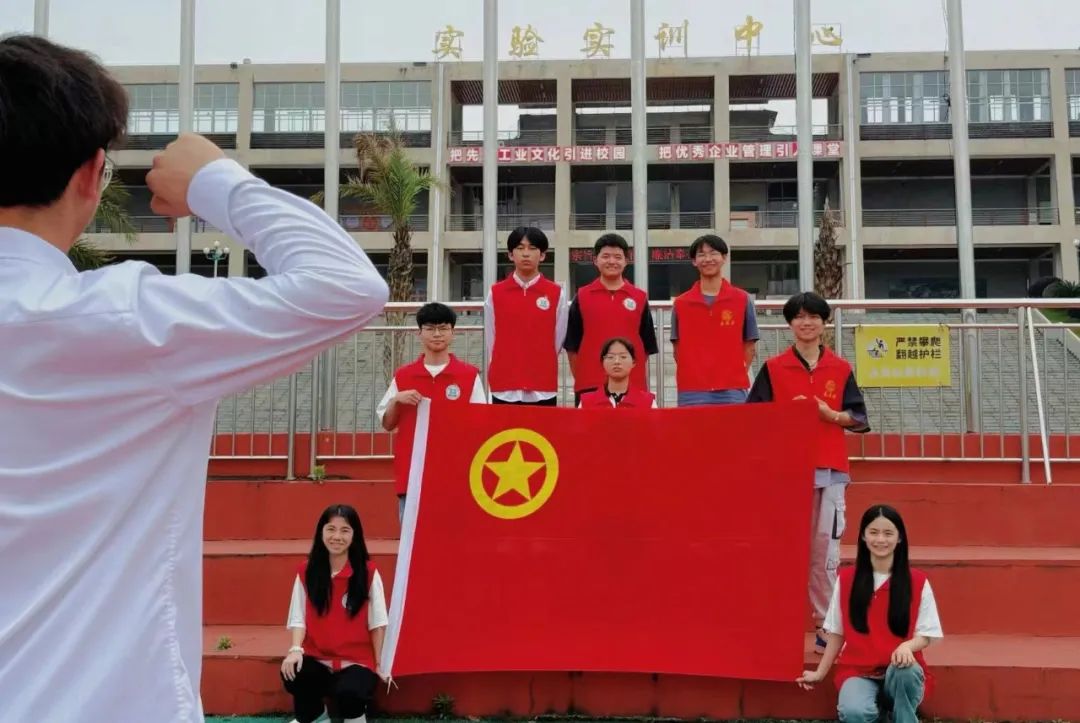 与团旗合影,绽放青春光彩