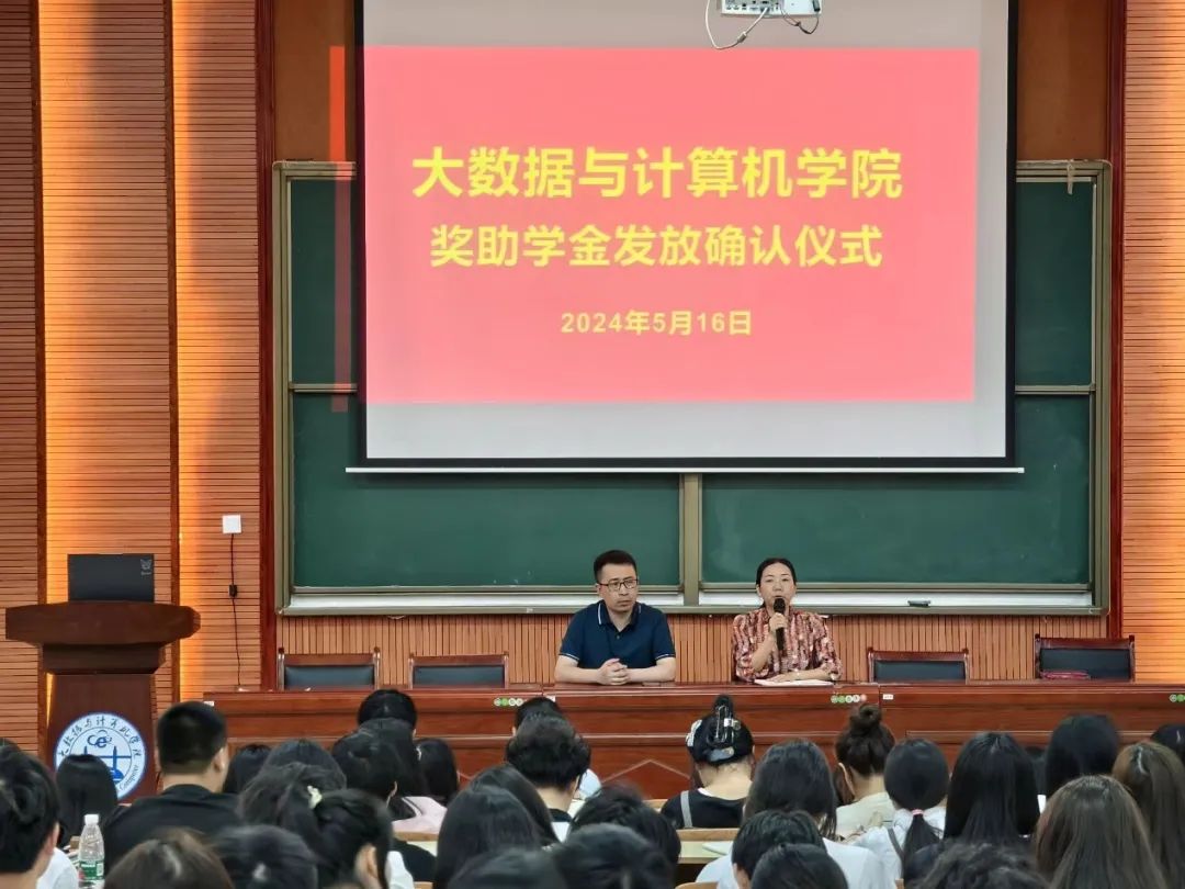 为全面落实国家资助政策,帮助学院优秀学生顺利完成学业,确保每一位受资助学生的奖助学金顺利发放,2024年5月16日下午于二楼报告厅,我院组织签订2022-2023学年国家奖学金、国家励志奖学金、2023-2024学年国家助学金发放告知确认书,由党总支书记王娟主持,大数据与计算机学院院长巢喜剑,各班班主任及全体获评奖助学金的同学参加。