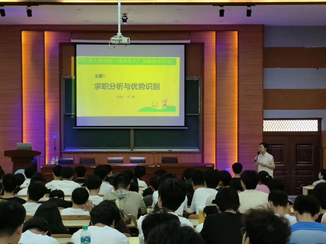 为了深化就业育人理念,提升学生们的就业意识和职业规划能力,5月24日,大数据与计算机学院于二楼报告厅开展以“求职分析与优势识别”为主题的就业育人主题讲座,本次讲座由江西工程学院党委学生工作部副部长邓美主讲,大数据与计算机学院团总书记林稳出席,我院2023级200余名学子积极参与。