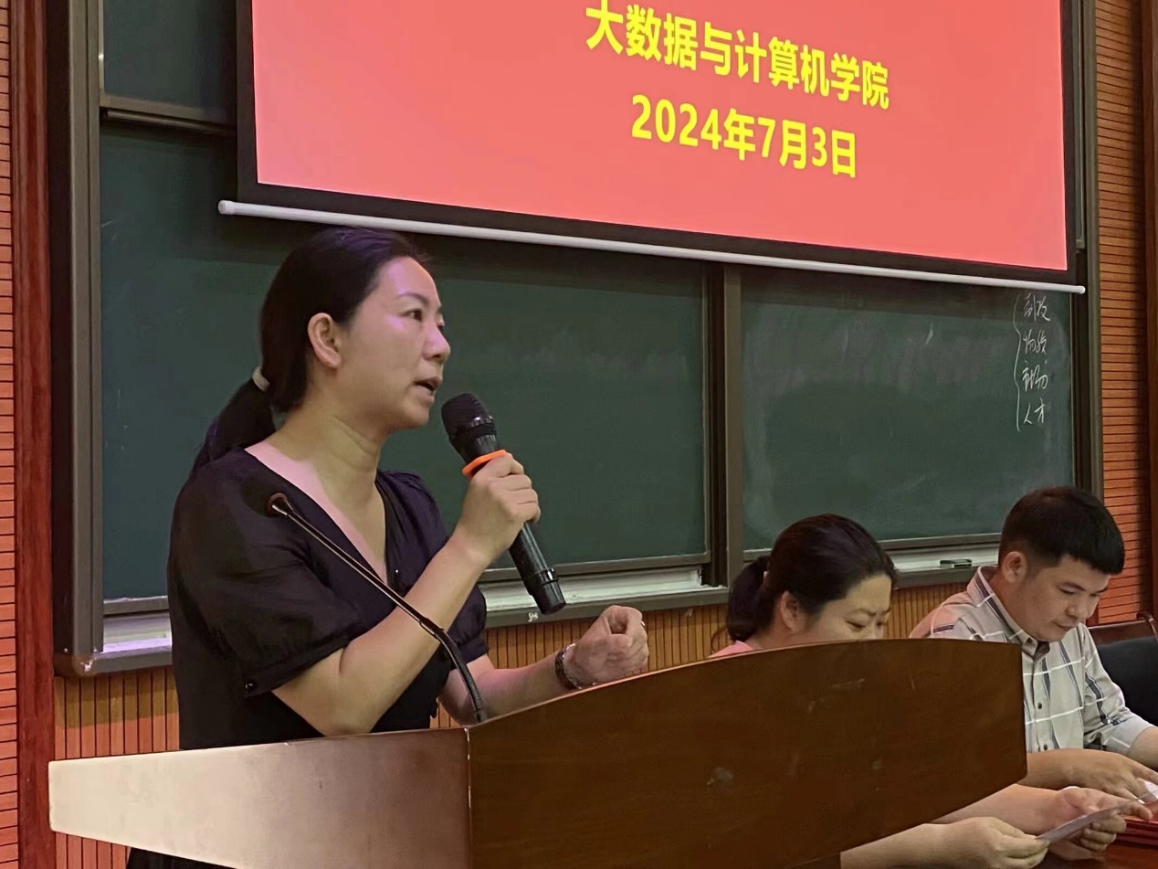 为表彰先进,树立典范,鼓舞士气,进一步激发学生的学习热情,营造积极进取的学习氛围,鼓励表现突出的优秀学生,2024年7月3日,大数据与计算机学院在二楼学术报告厅召开2023-2024学年第二学期学生表彰大会。大数据与计算机学院党总支书记王娟,党总支副书记郑智山,办公室主任黄竹明,辅导员代表以及170余名学生参与了本次表彰大会,会议由黄竹明主持。