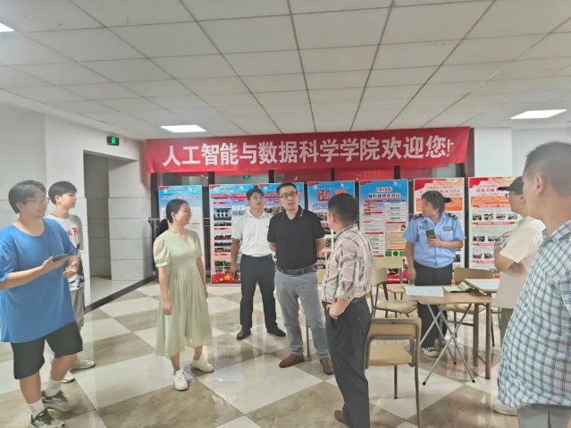 新学期伊始,为落实新学期学生安全返校工作,掌握学生思想动态,进一步做好学生的教育、管理与服务工作,8月29日晚,人工智能与数据科学学院院长巢喜剑、党总支书记王娟、校后勤处副处长刘绍印等领导深入学生宿舍,对返校学生的暑假假期生活进行了关心,为学生送去问候。
