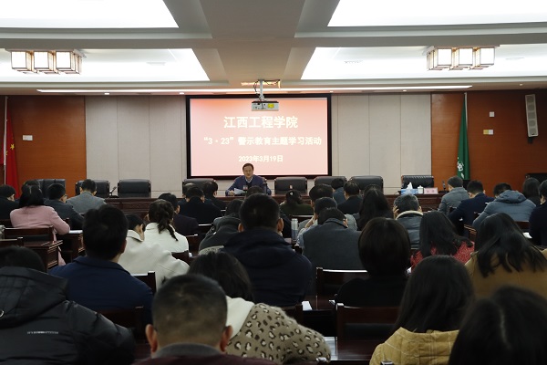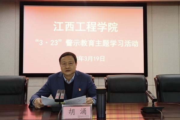 会上,与会人员观看了电视专题片《“赶考”路上》警示教育专题片,党委书记、督导专员胡涌以《以担当实干走好新的赶考之路》为题为大家上了一堂专题党课。党委专职副书记、纪委书记黄志良通报了《关于肖志华腐败案件暴露教育领域突出问题及其教训警示的通报》,宣读了《江西工程学院关于开展“3.23”警示教育活动的通知》。 胡涌书记指出,在中国共产党成立100周年大会上,习近平总书记深情回顾中国共产党百年奋斗的光辉历程,高度评价一百年来中国共产党团结带领中国人民创造的伟大成就,庄严宣告我们实现了第一个百年奋斗目标,在中华大地上全面建成了小康社会,精辟概括“坚持真理、坚守理想,践行初心、担当使命,不怕牺牲、英勇斗争,对党忠诚、不负人民”的伟大建党精神,全面总结以史为鉴、开创未来的“九个必须”,号召全体中国共产党员在新的赶考之路上努力为党和人民争取更大光荣。接下来,我们要认真做好迎接本科教学工作合格评估工作和年检两项工作,走好新的“赶考”之路,推动全面从严治党向纵深发展。