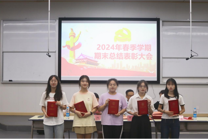 耕耘更知韶光贵,不待扬鞭自奋蹄。为深入贯彻落实习近平总书记关于青年工作的重要思想,促进我院团总支学生会工作规范化、制度化和系统化发展,全面总结本学期学生会工作成果,加强队伍建设,为下学期工作推进奠定基础,7月1日下午4:30,教育与健康管理学院在C208开展2024年春季期末总结表彰大会。学院党总支书记刘永东、副书记张沁,教师党支部书记高爽、学生党支部书记刘露出席会议,各班班委、全体学生会成员参加会议。会议由团总支学生会文体部干事祝贝主持。