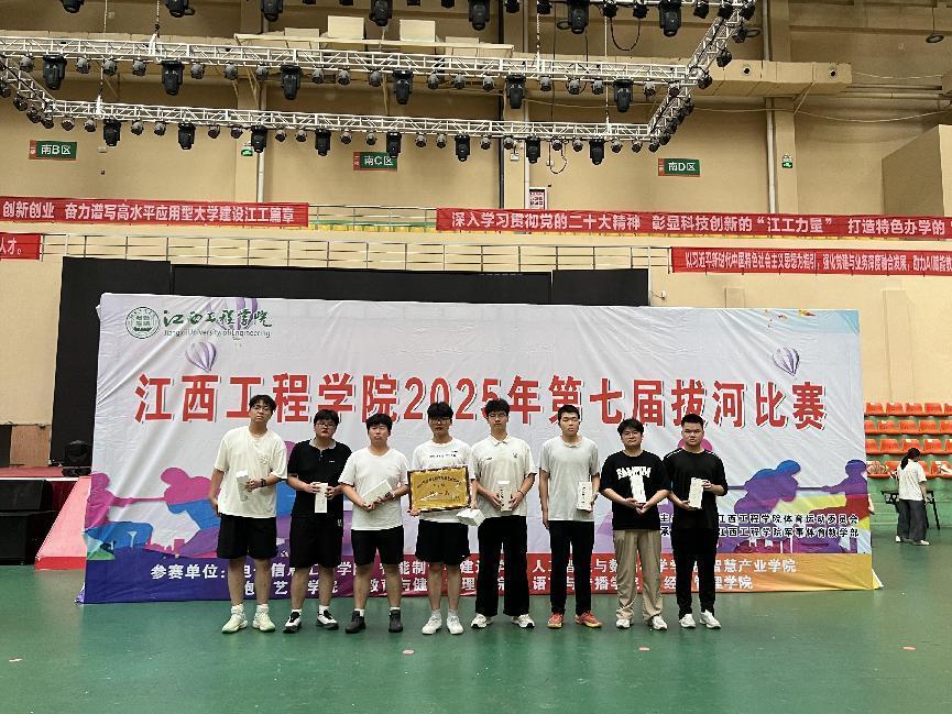 为丰富校园文化生活,弘扬团结协作、奋勇拼搏的体育精神,江西工程学院2025年第七届拔河比赛在天工校区国旗下篮球场火热开赛并圆满落幕。本次比赛参赛人员是各学院学生,以院为单位,按性别分为男子组和女子组。拔河比赛核心价值在于团队协作,以此契机培养学生合作精神、竞争意识和坚韧不拔的意志品质。