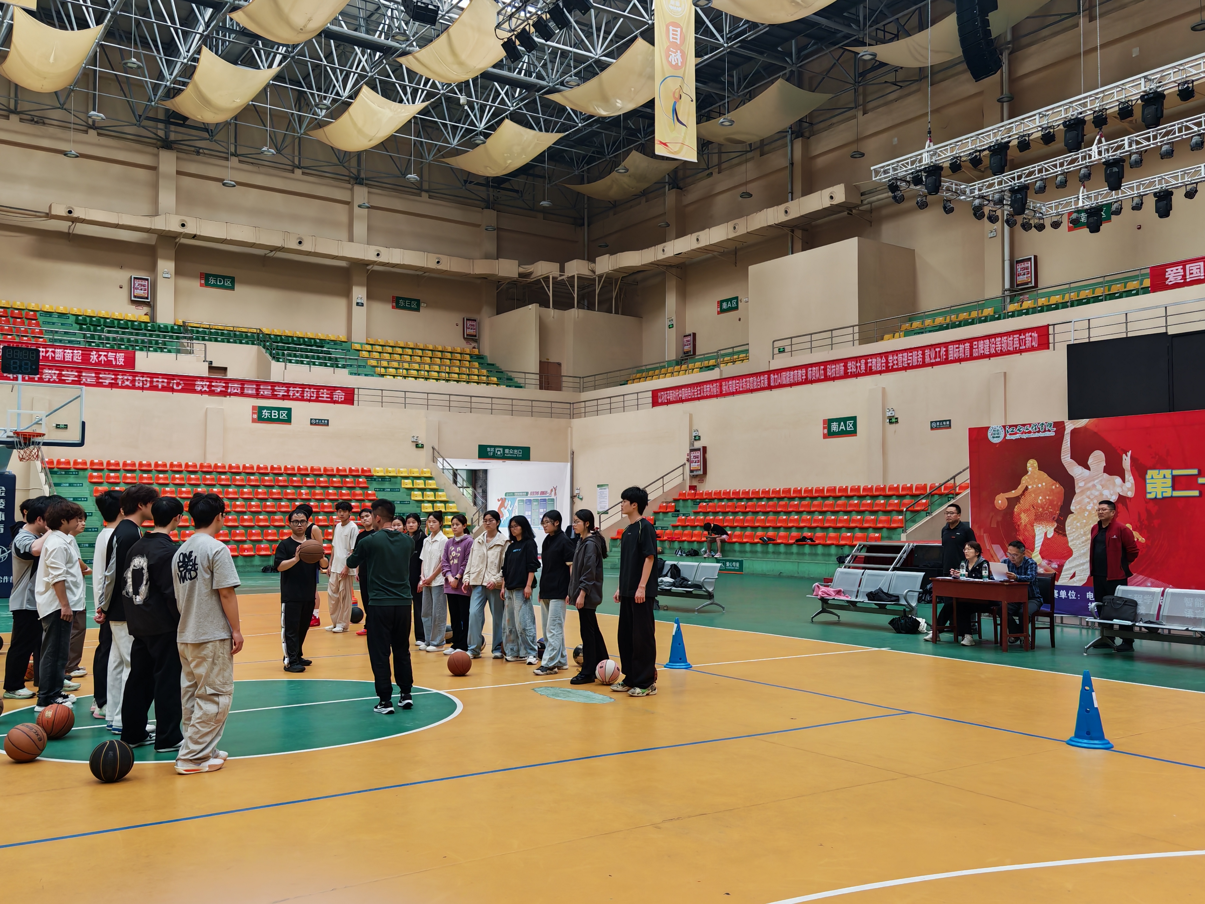 为进一步强化课堂教学管理,精准把控教学质量,扎实推进体育课程教学规范化建设,2026年4月14日下午第五节课,校督导杨有强、徐玉华两位教授深入军事体育教学部课堂,现场聆听傅丽兵老师讲授的篮球选修课,军事体育教学部主要领导全程陪同听课。
