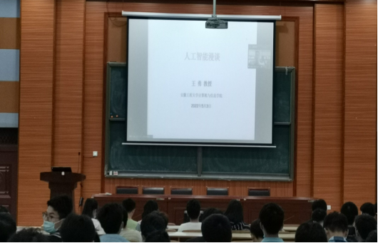 为使我院学子了解人工智能技术的发展历史,充分认识人工智能技术在社会生产中的重大意义,激发同学们对于人工智能技术的兴趣,大数据与计算机学院于2022年5月3日晚7点在教学楼A栋二楼多媒体教室举行了“人工智能漫谈”讲座。特邀安徽工程大学计算机与信息学院王勇教授为大家讲解人工智能。