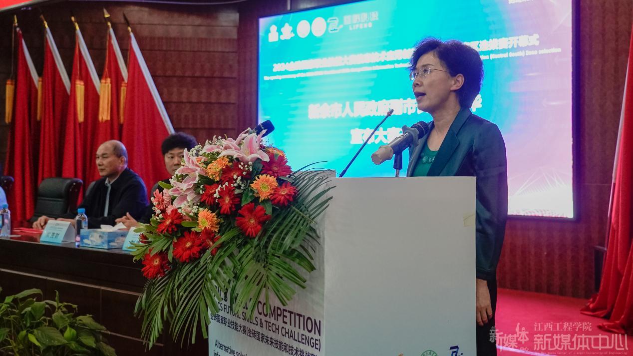 新余市人民政府副市长陈文华,江西工程学院党委副书记、校长史焕平,金砖国家职业技能大赛中方竞赛办公室副主任宋小琴 ,麒麟软件华南事业部总经理尹英兰,荔峰科技广州(有限)公司总经理肖茂财,大赛裁判长黄玉龙出席大赛开幕式并在主席台就座。大会开幕式由江西工程学院党委委员、副校长刘德华主持。