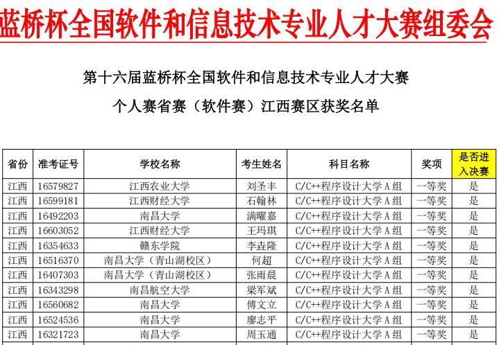 蓝桥杯全国软件和信息技术专业人才大赛由工业和信息化部人才交流中心主办,作为教育部认可的84项全国大学生学科竞赛之一,旨在提升大学生创新思维与实践能力,为国家软件和信息技术产业输送高端人才。赛事汇聚南昌大学、江西师范大学、江西财经大学等多所高校精英,竞争异常激烈。