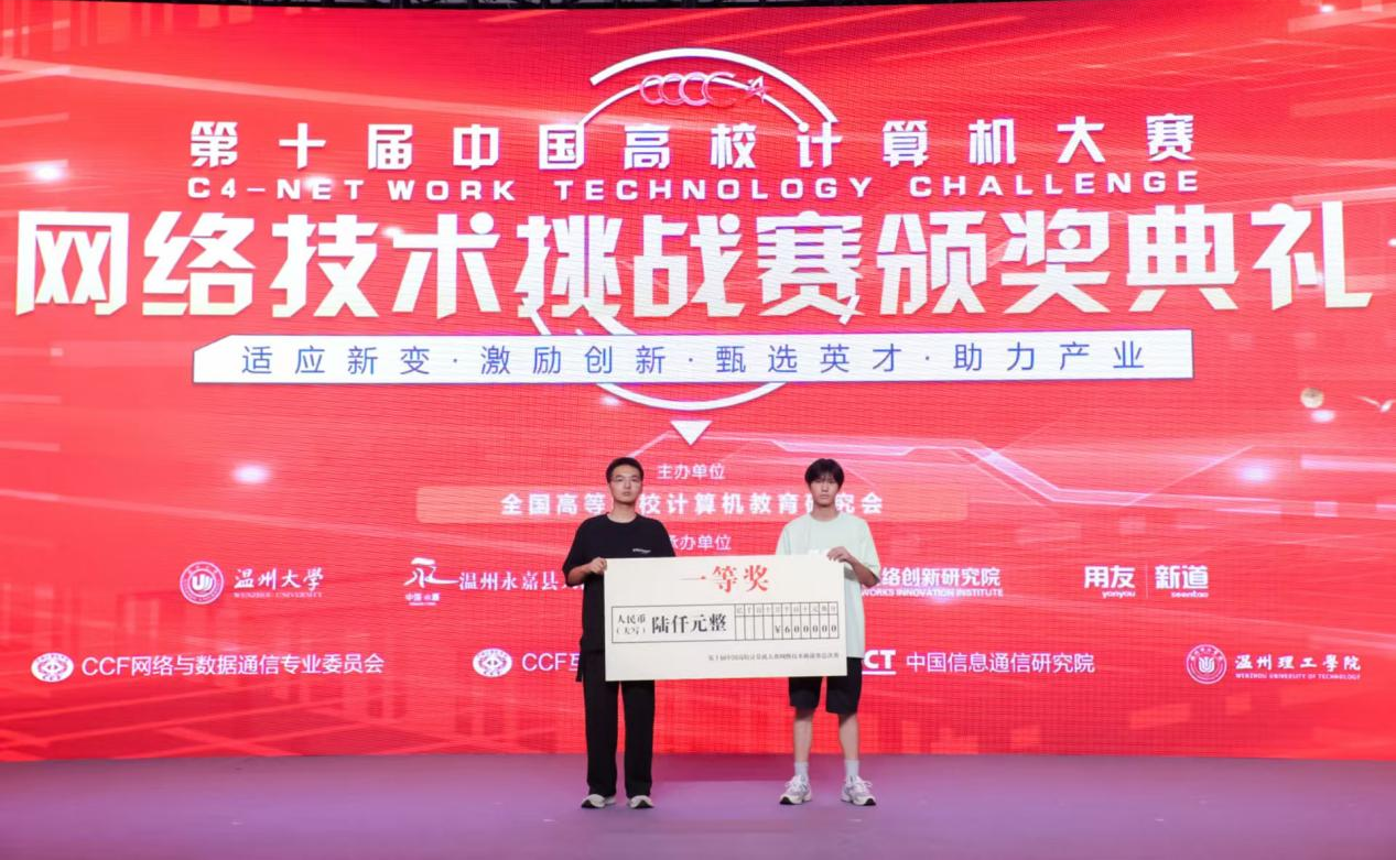 8月29——31日,由全国高等学校计算机教育研究会主办的2025年度“中国高校计算机大赛——网络技术挑战赛”决赛在温州隆重举行。本届赛事汇聚了浙江大学、桂林电子科技大学、南京航空航天大学、武汉大学等国内知名高校,经过层层选拔与激烈角逐,江西工程学院人工智能与数据科学学院2支参赛队伍闯入C4-NET挑战赛全国总决赛,荣获全国一等奖和三等奖各1项。其中,该赛项全国总决赛一等奖的获得实现了学校在该领域的历史性突破。