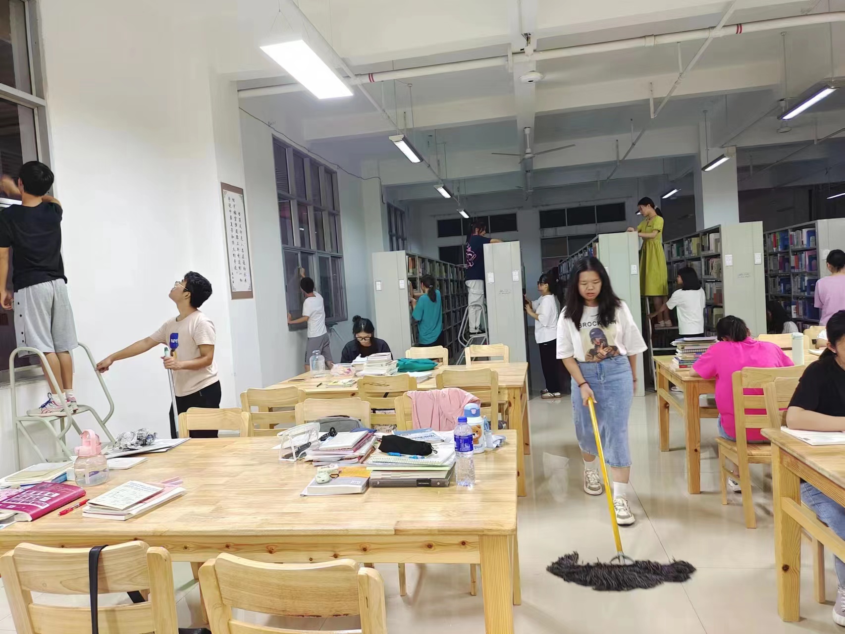 图书馆是学校育人的重要场所,舒适的环境能怡情养性。如何筑巢引凤?如何做到窗明几净?请看图书馆领导、馆员、勤工俭学学生为创建一流学习环境而辛勤付出的精彩瞬间: