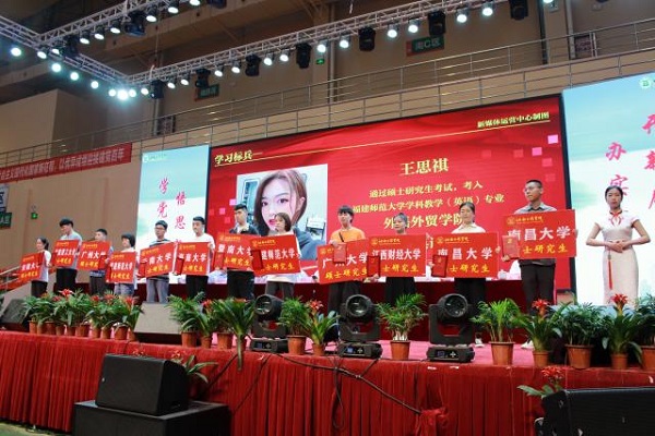 九是继续构建学生学历提升助推体系。几年以来,江西工程学院毕业生的考研热情和考研成绩不断提升。2021届毕业生参加国家硕士研究生入学考试,不负众望,取得了优异的成绩。统计111人上国家线,有74名应届毕业生录取全日制硕士研究生(其中1名同学考取了双一流建设高校,9名同学考取了双一流学科建设高校),全校录取率高达6.5%,位于省内同类高校第一。