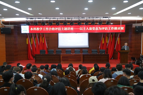 张晨曙校长结合具体案例、实时数据分别阐述了什么是本科教学合格评估、新建本科院校概况、本科教学合格评估的主要目的、本科教学合格评估与在校学生的关系以及本科教学合格评估对学生提出的要求,从五个方面深入细致的对我校本科教学工作合格评估体系进行了详细解读。