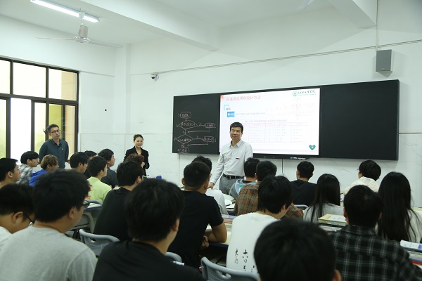 首先,上午9:50杨名权来到仙女湖校区C408听取程海霞《软件工程》课程,讲课中程老师专业讲解清晰,并且能够结合当前形势,将思政教育融入课堂,杨名权全程聚精会神听课、认真做着笔记,对程海霞老师授课效果给予高度赞扬。课间杨名权董事长语重心长与同学们积极沟通和交流,他强调:“思政课的本质是讲道理,要注重方式方法,把道理讲深、讲透、讲活,要用学生的语言,动之以情,晓之以理传授给学生,说到底就是将老师的教和学生的学有机结合。”同时勉励广大青年学子要心怀“国之大者”、学好知识本领,报效祖国。