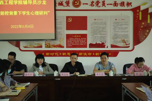 当前国内疫情多地散发,各高校疫情防控管理常态化,为树立学生积极理性的防疫心态,进一步提高学生心理健康教育工作的实效性,5月4日下午,我校在C栋教学楼601会议室开展“疫情防控背景下学生心理研判”主题沙龙活动。学工部相关负责人、马克思主义学院党总支副书记、国家二级心理咨询师晏双平、外语外贸学院党总支相关负责人、各二级分院辅导员参加活动。活动由学工部负责人主持。