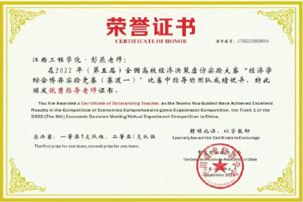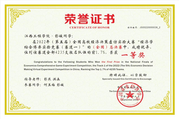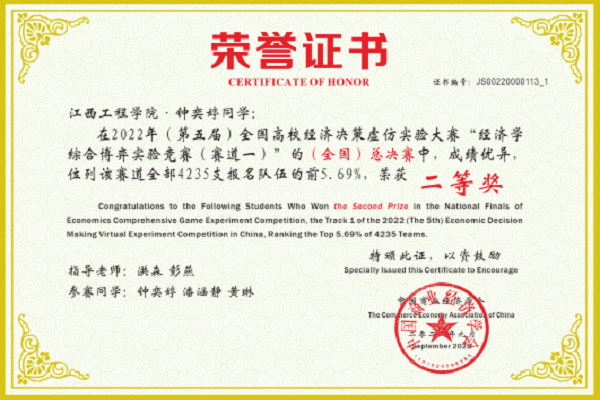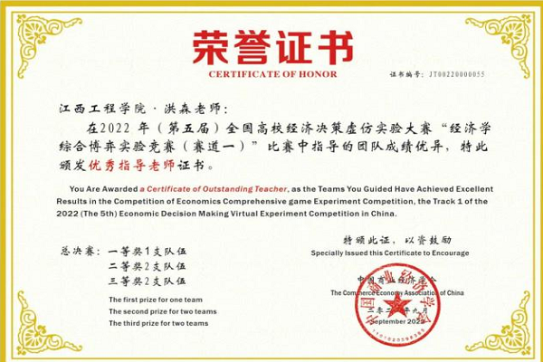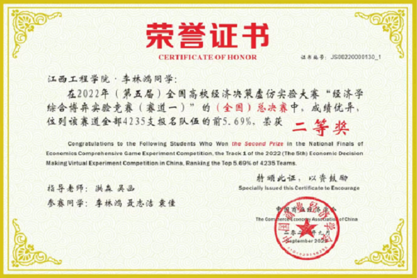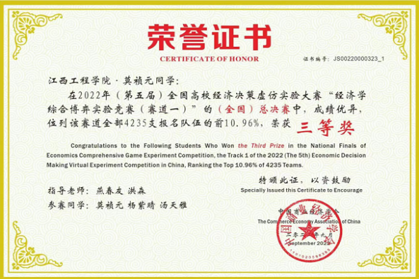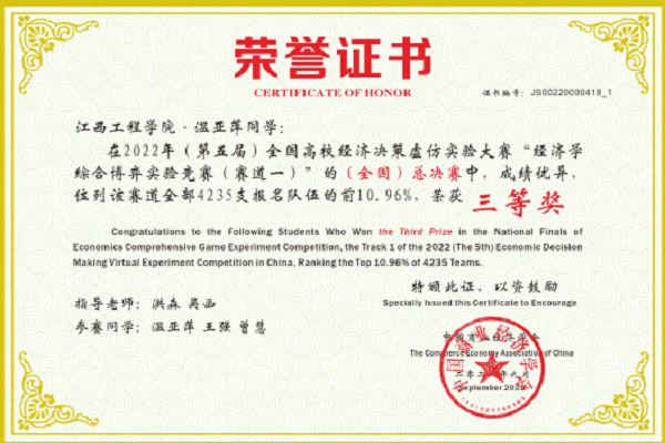 2022年9月11日,第五届全国高校经济决策虚仿实验大赛决赛成功举办,我校工商管理学院共有五支队伍参加总决赛,荣获全国一等奖一项,全国二等奖两项,全国三等奖两项。在四个融合育人模式的指导下,学院积极动员本科学生在《西方经济学》等专业基础课程学习的基础上参加该项赛事第一赛道的比赛。从选拔、校赛、区域赛到全国赛总决赛,学院精心组织,统筹安排,经过前后五个多月的刻苦训练,一路过关斩将,在名次和获奖队伍上较上年有较大突破。