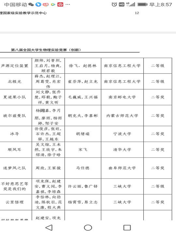 指导老师郑欣老师,熊伟老师带领的学生团队林聪,李高勇,张俊翔, 童济宇项目《利用激光的干涉测量金属丝的杨氏模量》获得自选课题类优秀奖。