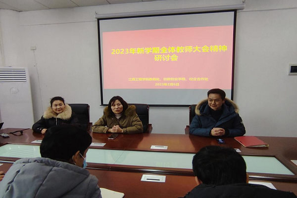 教务处等单位:2月6日下午,教务处、创新创业学院、校企合作处在天工校区行政楼500会议室联合召开了“2023年新学期全体教师大会精神研讨会”,三个部门全体成员参加了研讨会。