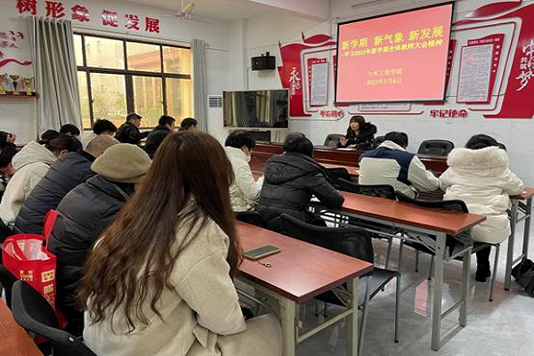 2月6日上午,江西工程学院召开“聚焦迎评创高,凝聚工作合力,以新发展理念加快学校高质量发展—2023年新学期全体教师大会”,为学校高质量发展描绘奋进蓝图。学校校领导胡涌、陈学军、杨名权等紧扣学校高质量发展主题对全校重点工作作出动员部署。