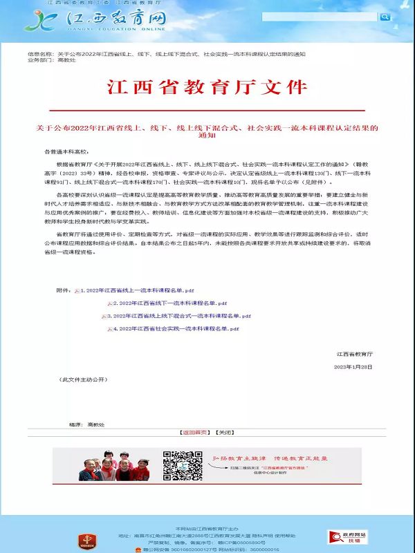 近日,江西省教育厅公布了2022年江西省线上、线下、线上线下混合式、社会实践一流本科课程认定结果,江西工程学院会计金融学院《财务管理》课程被认定为“省级一流本科课程”。