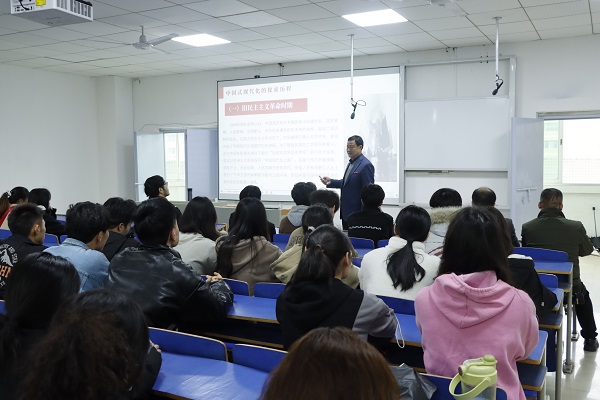 讲课受到了学生的热烈欢迎,学生们认真听和记,现场时时响起热烈的掌声。同学们纷纷表示要深入学习贯彻党的二十大精神,弘扬伟大建党精神,自信自强、守正创新,踔厉奋发、勇毅前行,为学校本科教学工作合格评估贡献力量,为实现中华民族伟大复兴的中国梦而努力奋斗。