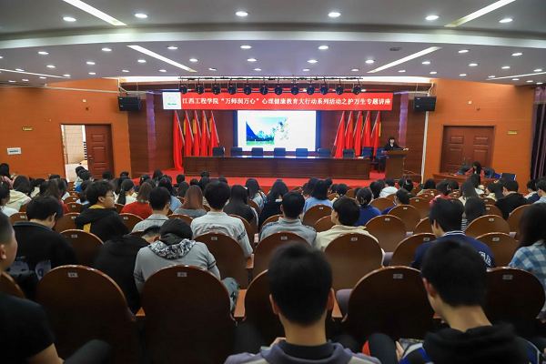 为深入学习贯彻党的二十大精神,全面贯彻习近平新时代中国特色社会主义思想,贯彻落实习近平总书记关于学生心理健康教育的重要指示精神,深入落实省政府办公厅《关于加强和改进新时代学生心理健康教育工作实施方案》,3月16日下午,我校在天工校区一楼学术报告厅开展了由江西省“万师润万心”心理健康大行动讲师团成员、校心理健康教育与咨询中心主任晏双平以《正念心理减压—大学生自我情绪管理》为主题的江西省高校“万师润万心”心理健康教育大行动系列活动之护万生专题讲座。天工校区300余名学生参与了本次讲座。