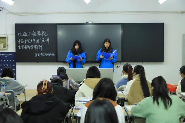 全国“两会”是在全面贯彻党的二十大精神开局之年,在全面建设社会主义现代化国家开局起步关键时期召开的一次重要会议,深入学习宣传贯彻全国“两会”精神是学校当前和今后一个时期的重要政治任务。为帮助学校师生进一步领会中国式现代化的深刻内涵,3月19日,江西工程学院“十百千宣讲团”走进班级宣讲全国“两会”精神,并对本科教学工作合格评估手册进行全方位的解读。