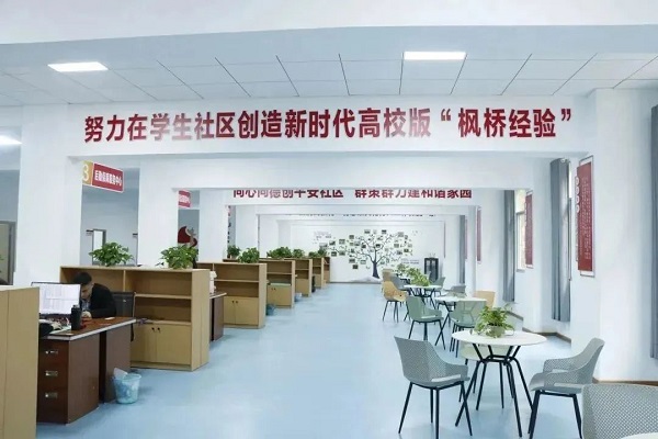 学校建立了完善的协同工作机制,落实了党建工作进社区制度,落实了学校各级领导联系学生制度。致力于构建以一个核心任务(思政育人)、两种机制(社区管理中心协同、“学院+社区”协同)、三支队伍(学校-社区-学生)和X项基本功能(学生日常业务办理、社区思政VR实践、学业就业指导、心理咨询辅导等)为一体的“123+X”“一站式”学生社区建设机制。127名思政教师入驻学生社区,定点联系班级、宿舍,关注特殊学生,开展谈心谈话,帮扶就业等,带动10000余人次走进社区。学生日常所需的行政审批、证件办理等业务在社区服务大厅5分钟内就能完成,学生表示:“除了去教室上课,其他事都能在学生社区解决”。为了满足学生的不同需求,学校秉持“把最好的资源给学生,用最好的条件建社区”理念,建有VR体验室、学生研讨室、互动交流区、配套生活服务设施等设施。在“一站式”学生社区能学习、能休闲、能交流……,各种设施应有尽有。打造“123+X”的“一站式”学生社区服务中心,坚持用情用心将好事办好的基础上,开发更多惠及学生的服务。