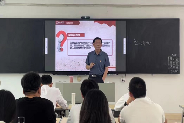 为深入学习贯彻党的二十大精神,落实立德树人根本任务,开好新时代的“大思政课”。推动思想政治理论课改革创新和内涵式发展,增强思政课的思想性、理论性和亲和力、针对性,打造教师教得好、学生听得进的“金课”“新课”。我校以马克思主义学院建设为抓手,围绕“问题式专题化团队教学改革”主题,以讲政治和讲道理为着力点,开展了“一课多师、师生同台”问题式专题化融合育人教学活动。