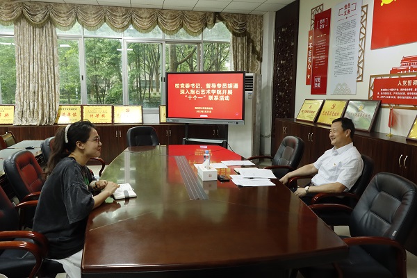 为深入学习宣传贯彻落实党的二十大精神,全面贯彻习近平新时代中国特色社会主义思想,学习贯彻省长叶建春在江西农业大学形势报告会暨专题党课上的讲话精神,落实立德树人根本任务,近日,校党委书记、督导专员胡涌深入抱石艺术学院开展“十个一”联系活动,现场为抱石艺术学院的师生们解决急难愁盼问题。
